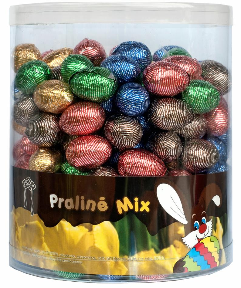 P802 Chocolade creme-eitjes ass. 2kg praline (per tube)